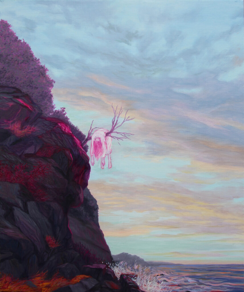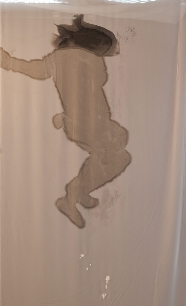 展示する場所の後ろが黒い壁だったので、その壁を通過する、出たいということを拡張させて見せたかった。揺れながら互いに重なりながら一緒に動く姿、それらが一緒に進んでいく話をこめました。