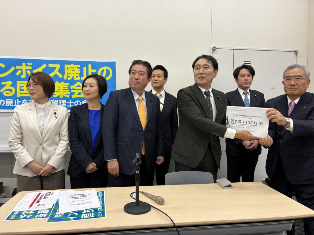税理士の会が「インボイス廃止法案」の提出を求め、国会議員に署名提出