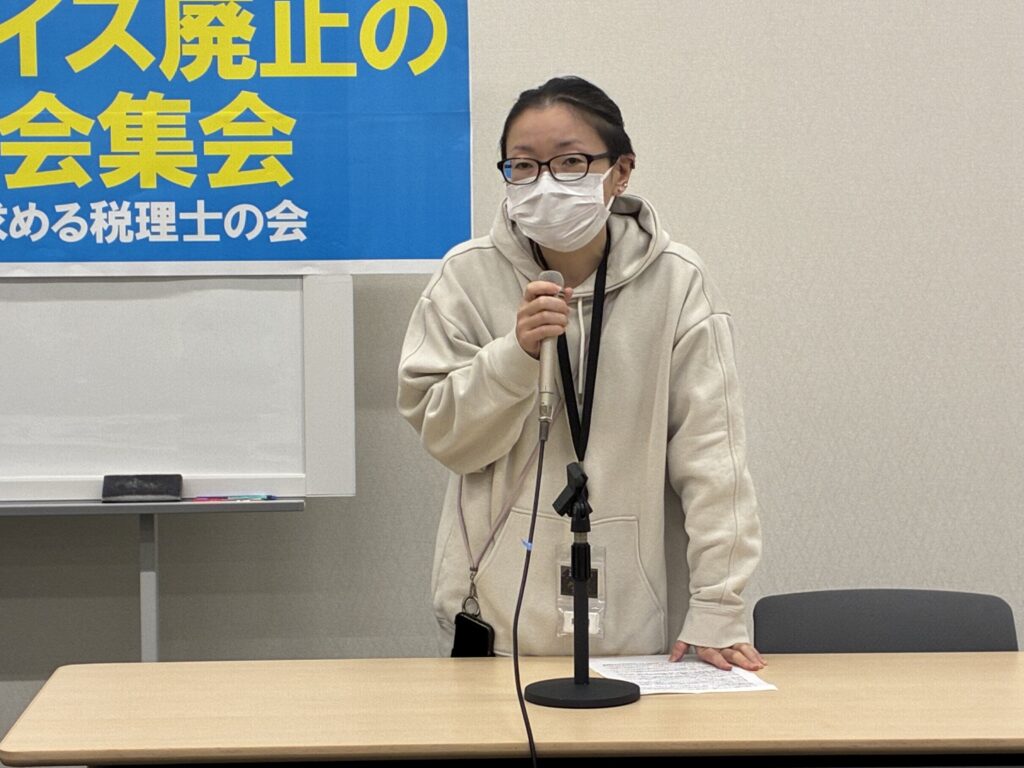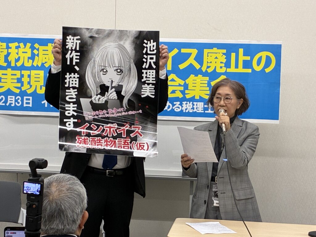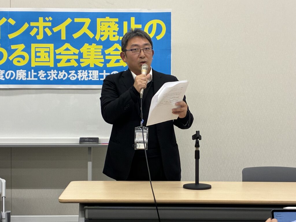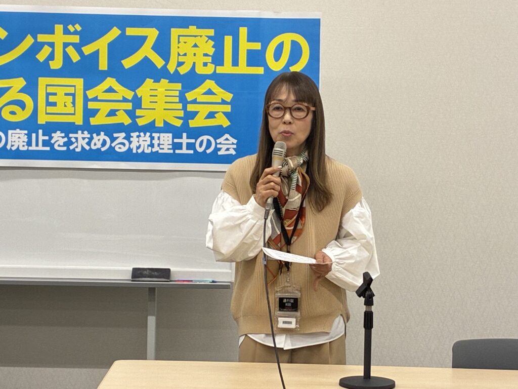 集会では建設、運輸、漫画家、作家、税理士、医療、農業、声優など、さまざまな業態の事業者から、消費税やインボイスが仕事に与えている影響について発言がありました。