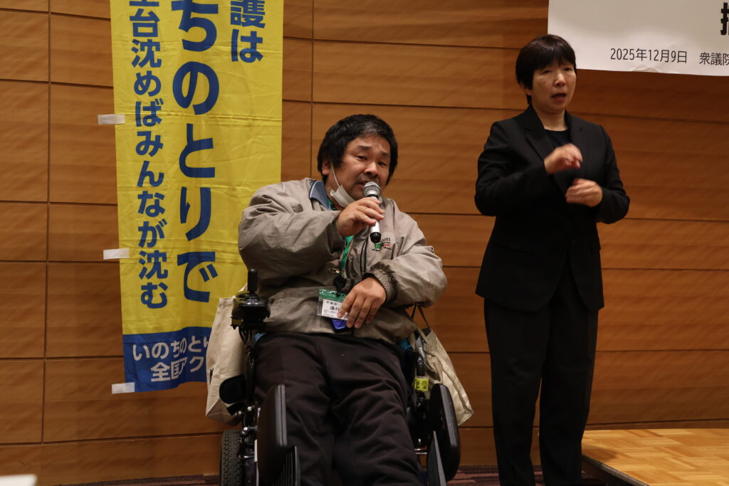 「年金が少ない、生活保護はずるい」と言っている人に、「あなたも生活保護を受けたらどうですか?」と言ったら、生活保護利用者は高級車を乗り回しているというデマを真に受けていたのに、「車を手放さなければいけないから受けない」と矛盾したことを言う。嘘で鬱憤晴らしをして、本当の苦しみから目を背けさせることを政権がやってきている。それでは誰の命も守れない。失われる命が増えていく。力を合わせて命を守る闘いをしていきたい。