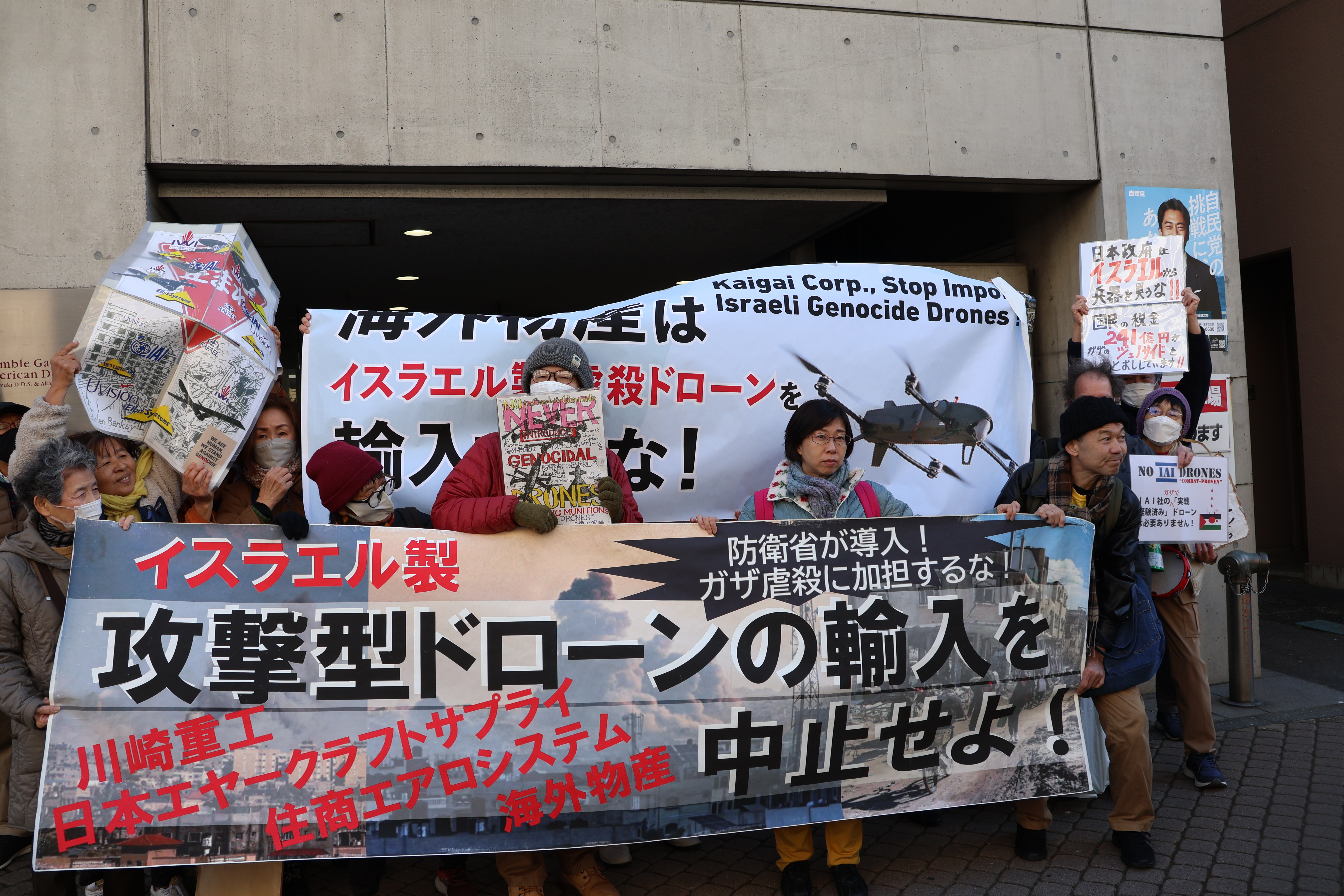 防衛省・自衛隊による初の攻撃型UAV(ドローン)の入札が2月17日に迫っています。国は310機の取得用予算として、今年度320億円を計上しています。候補機となっている4機種のうち2機種がイスラエル製。パレスチナへのジェノサイドを肯定するメッセージになりかねないとして、市民団体が13日、防衛相を務める小泉進次郎衆院議員の横須賀市内の事務所を訪れ、イスラエル製ドローンの採用見送りを申し入れました。
