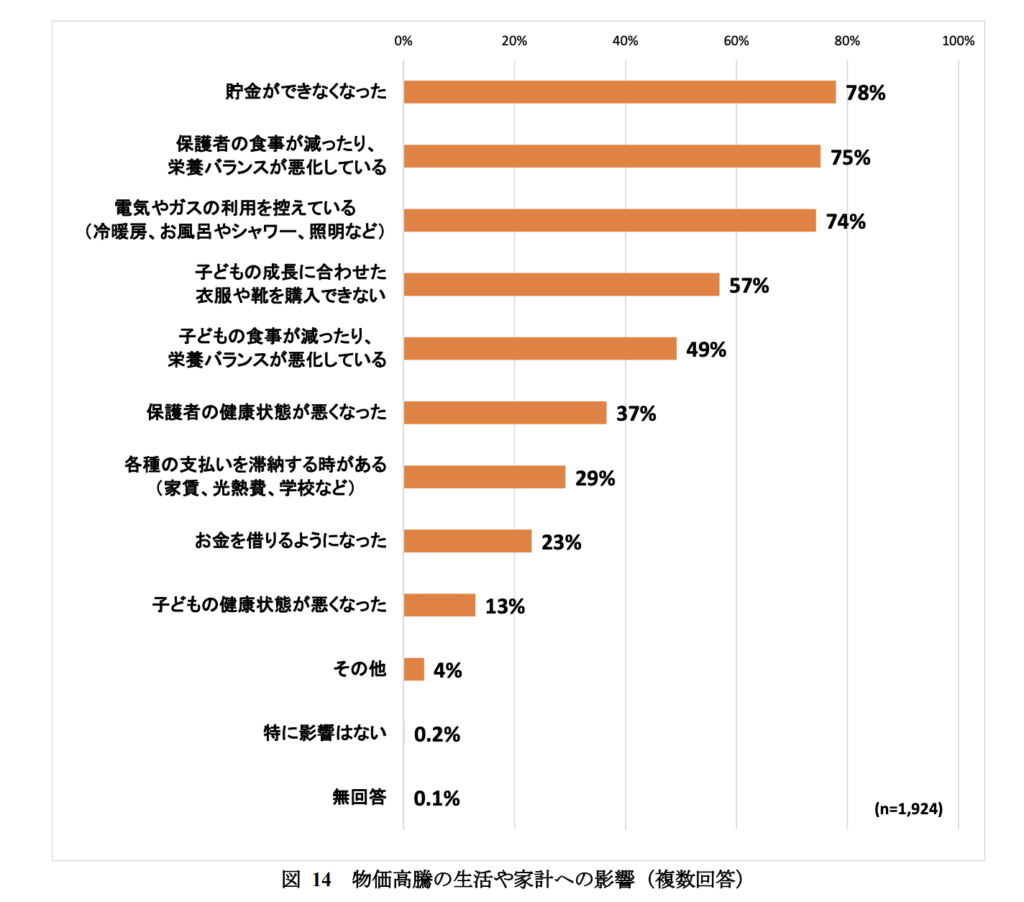 「子どもの食事が減ったり、栄養バランスが悪化している」も49%と5割に迫っています。健康が損なわれて、子どもが痩せていくという声が多い。これは放って置いてはいけません。