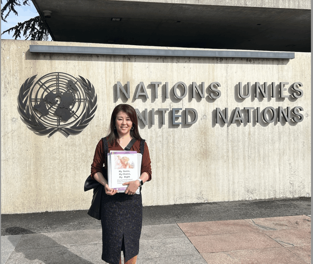 井田さんは国連女性差別撤廃委員会でも選択的夫婦別姓の実現を訴えた(一般社団法人「あすには」提供)