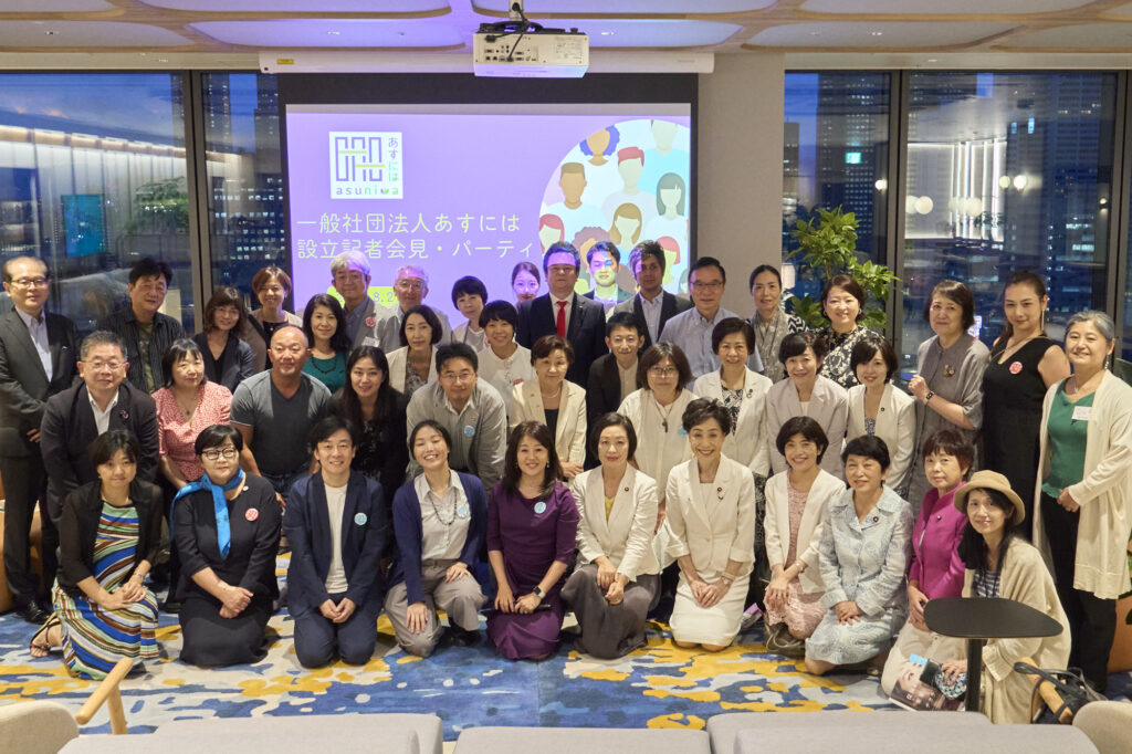 2023年、「あすには」法人化記念のパーティーには立場の違いを超えて多くの人が集った(「あすには」提供)