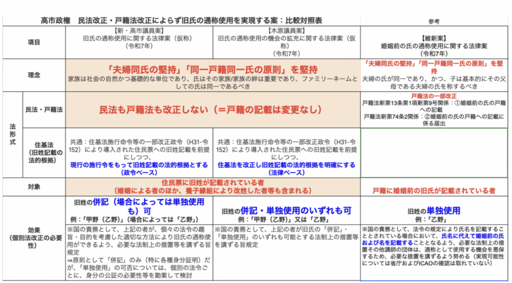 高市さんの案は住民基本台帳法の改正によるとみられています。それは努力義務しか課せられない。世界で日本だけが二つの名前を使えるという状況が生まれる。もっと問題なのは法案の詳細を公表していないことです。私たちも伝聞で聞くしかない。省庁の人も目星をつけて、比較表をつくって準備をしています。
