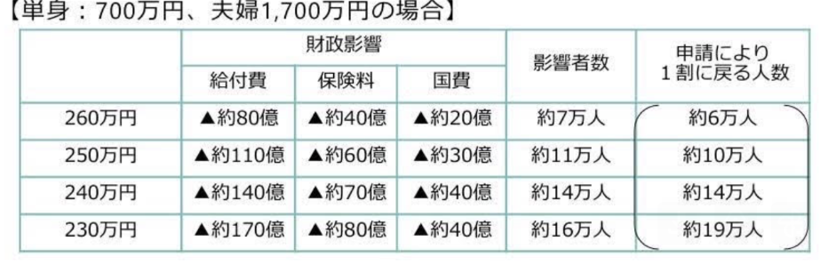 今政府が検討している介護保険の利用料2割負担の拡大により削減できる支出は、基準額では最も低い「年間所得230万円」までを対象にした場合でも、約290億円。