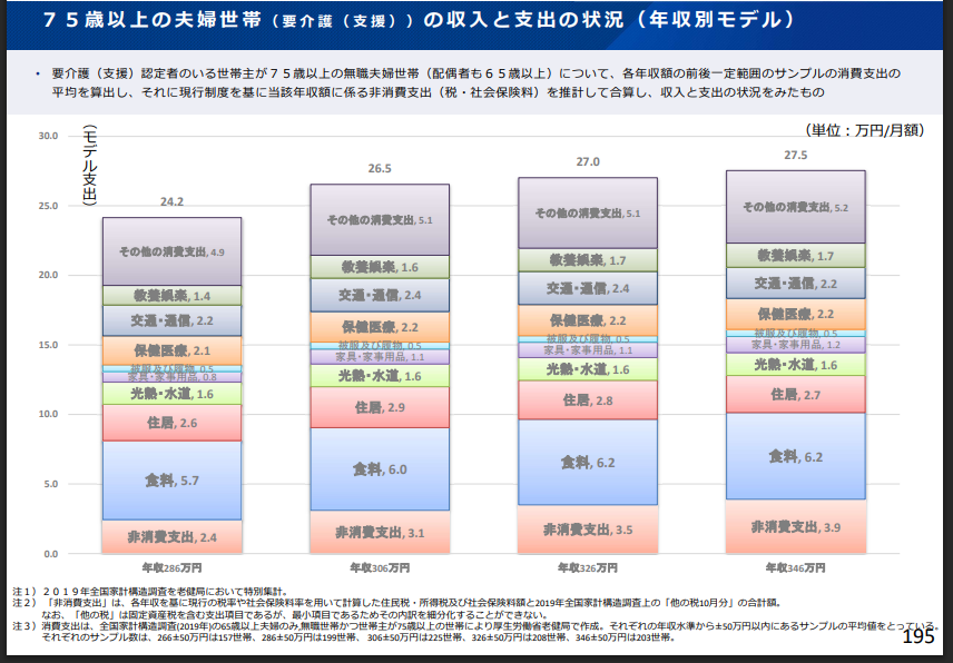 和田委員は、この調査資料は、2019年度の家計調査のデータに基づいており、2027年の改正に向けた議論の前提とすることはできない、とも発言。デフレ下であった当時とは支出傾向が異なり、その上、物価高騰にもかかわらず老齢年金が上昇していない実態がある。