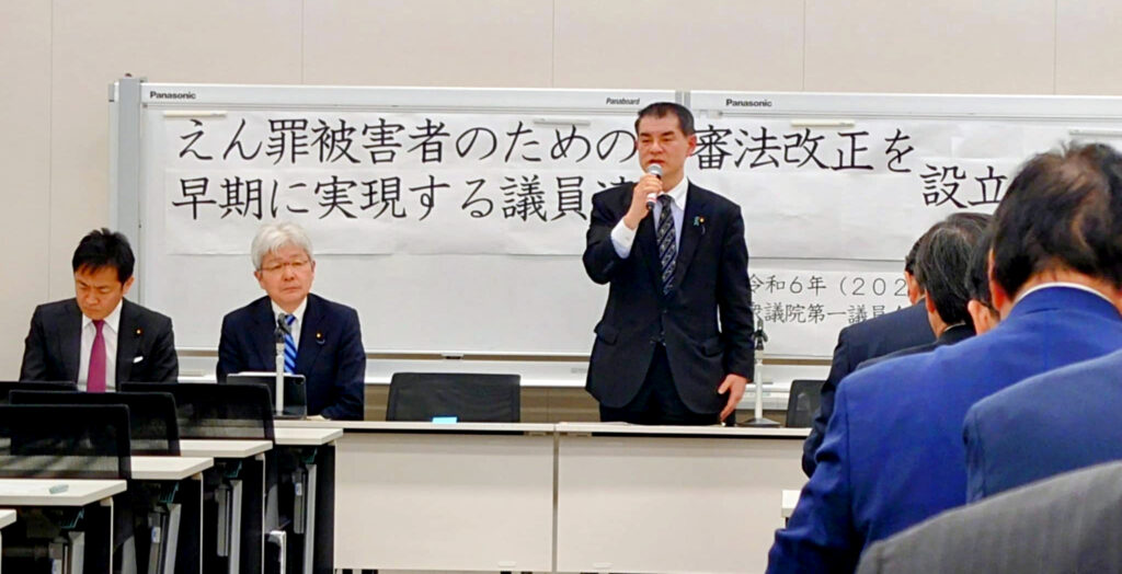その後2022年6月に日弁連内に再審法改正実現本部が立ち上がり本格的に動き始めた。国会議員に粘り強く働きかけ、再審法改正の歴史の中で初めて超党派の「えん罪被害者のための再審法改正を早期に実現する議員連盟」(以下議連)が2024年3月に結成された。柴山昌彦会長(自民)、逢坂誠二幹事長(立憲)、井出庸生事務局長(自民)=いずれも衆院議員=で、いちばん多い時で国会議員の過半数を超える388人が所属していた。メンバーの内訳で言えば自民党がいちばん多い。