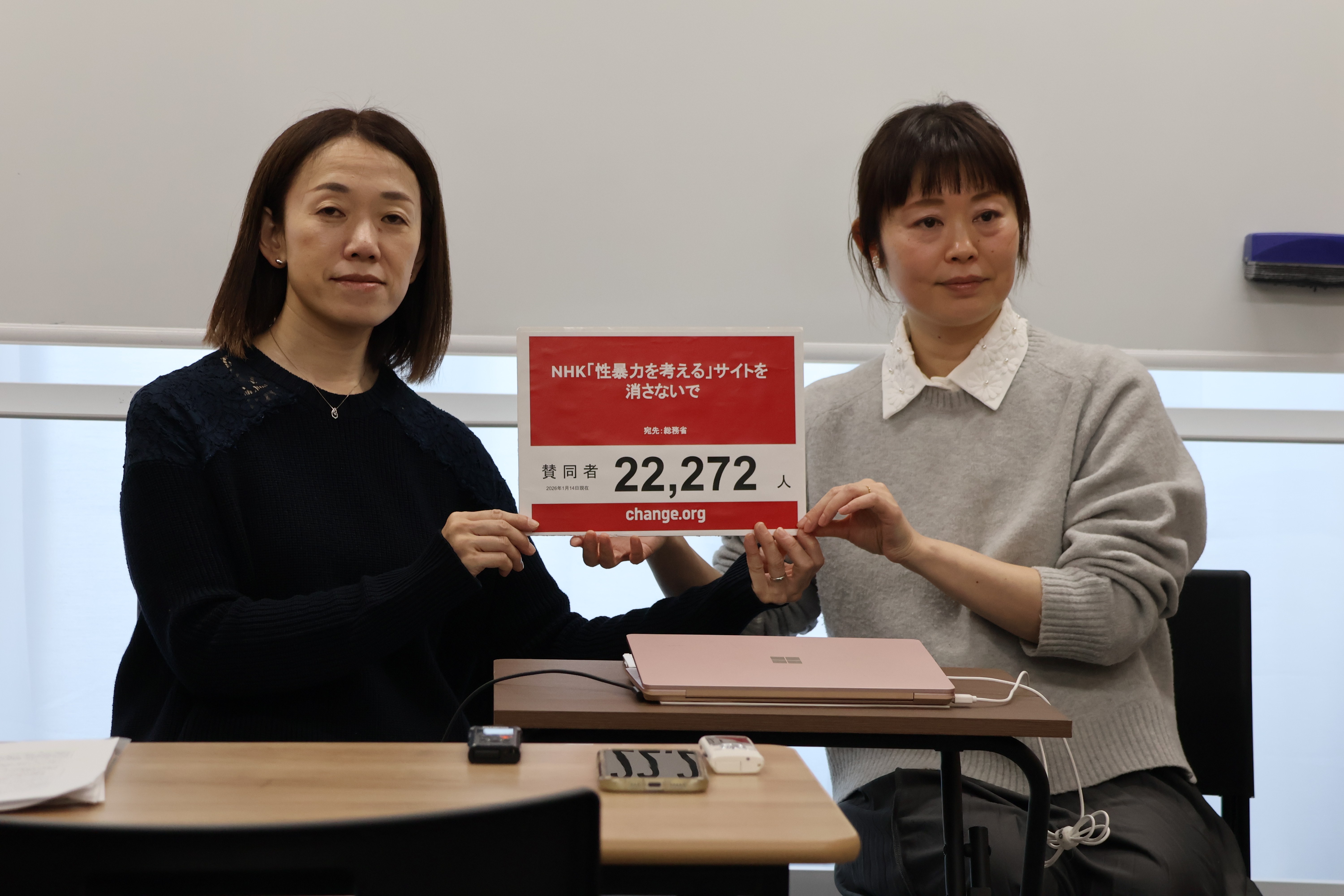 要望書を提出後、存続を求める会のメンバーで、性暴力被害者で元ライターの池田鮎美さん、性暴力被害当事者の岩田美佐さんが記者会見を開きました。