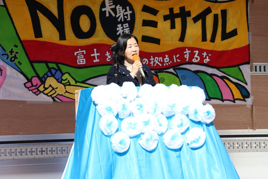 「昨年8月、防衛省から、富士駐屯地と熊本の健軍駐屯地に長射程ミサイルを配備すると発表がありました。期限は3月末です。来年度には、北海道、宮崎、横須賀にも配備されます。この狭い島国である日本全土をミサイル基地化しようとしているとしかいいようのない状況です」