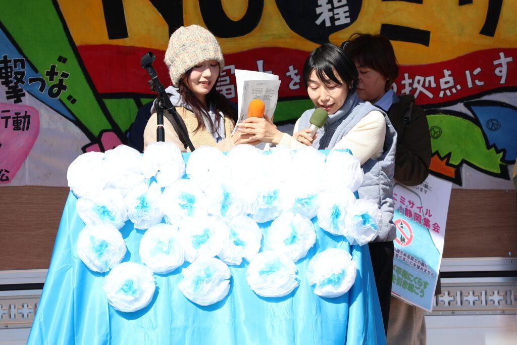 平和の象徴でもある富士の麓に、誰かを殺傷するための武器を並べることを、私たちは望みません。私たちは改めてここに、戦争に反対し、加害の拠点とならず、被害の標的ともならないよう、行動することを誓います。