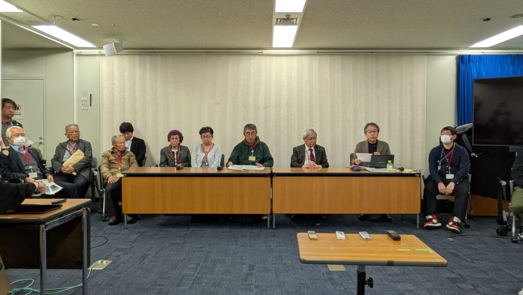 交渉後の記者会見では原告らから謝罪と早期給付を求める声が相次ぎました。