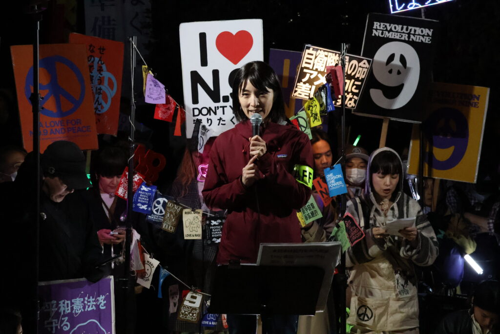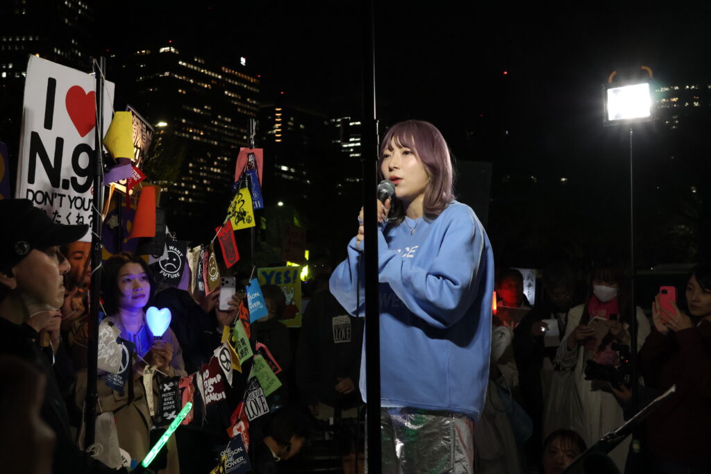 アメリカではトランプ政権が登場して、イスラエルのガザ侵攻もあり、ロシアのウクライナ侵攻もあり、今日、イランとは一度停戦するという動きになりましたけど、国会は自民党一色の状況です。私たちがこうやってペンライトを持って集まることについて、SNSを見ると腐してくる人がいます。「そんなことをやっても意味がない」という人はきっといると思います。現状で、ヨーロッパでも極右政権が誕生する前夜という国がたくさんある中で、本当に私たちの声って意味があるんだろうかって、不安になると思います。