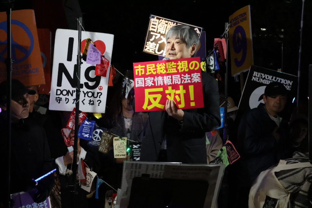 今、国会で審議が始まってしまったスパイ防止法案、国家情報局法案の全部に反対するためにここに立っています。秘密保護法対策弁護団の共同代表をしております。特定秘密保護法ができた時からこの制度にずっと反対をしてきました。
