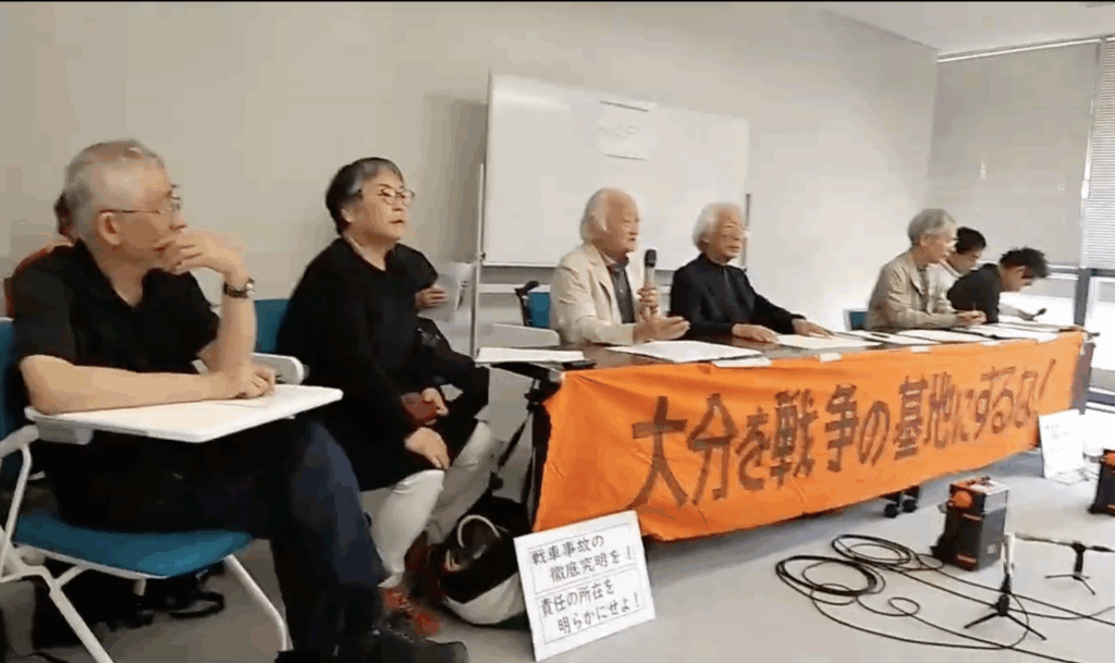 大分県にある陸上自衛隊日出生台(ひじゅうだい)演習場で4月21日、実射訓練中に戦車の砲塔内で砲弾が暴発し、搭乗していた自衛官3人が死亡、1人が重傷を負う事故が起きました。拙速な軍拡で自衛隊員の生命がないがしろにされているのではないか——。地元で活動する4団体が27日、大分県庁で記者会見を開き、「実弾演習の中止」「第三者による原因究明」「周辺住民への説明」などを求める声明を出しました。