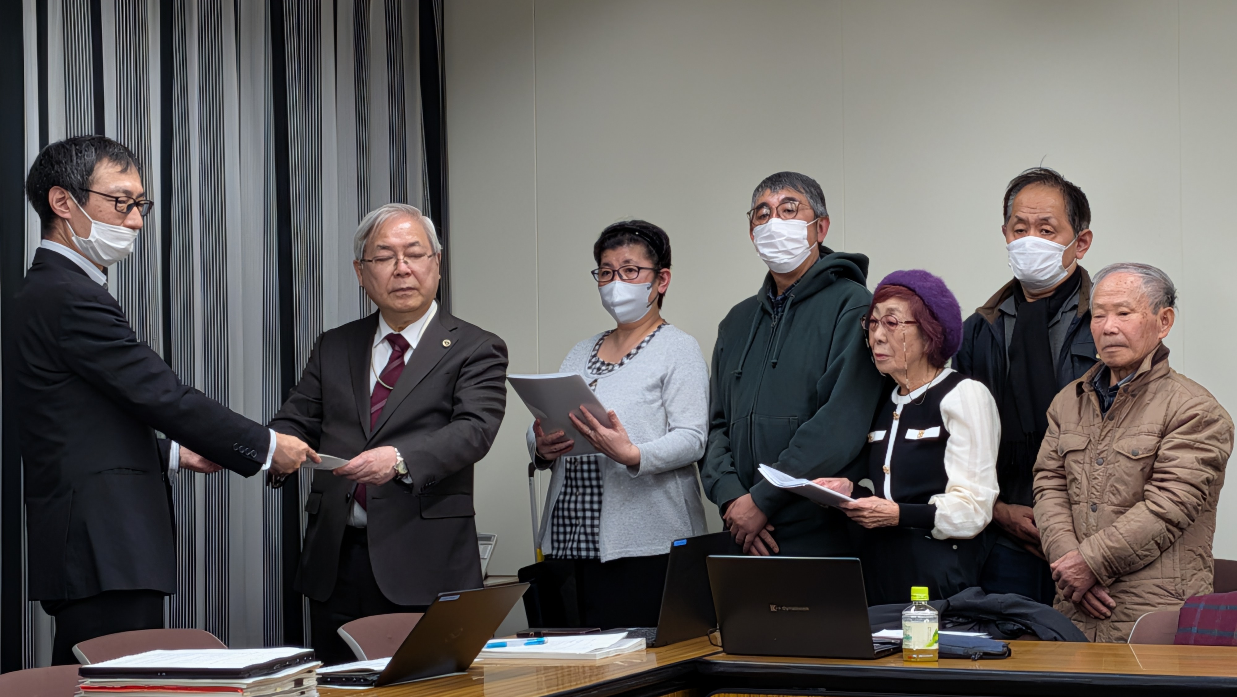 長崎県と長崎市は同月、厚生労働省に報告書を手渡し、「被爆体験者」の救済を求める要望書を提出しました。