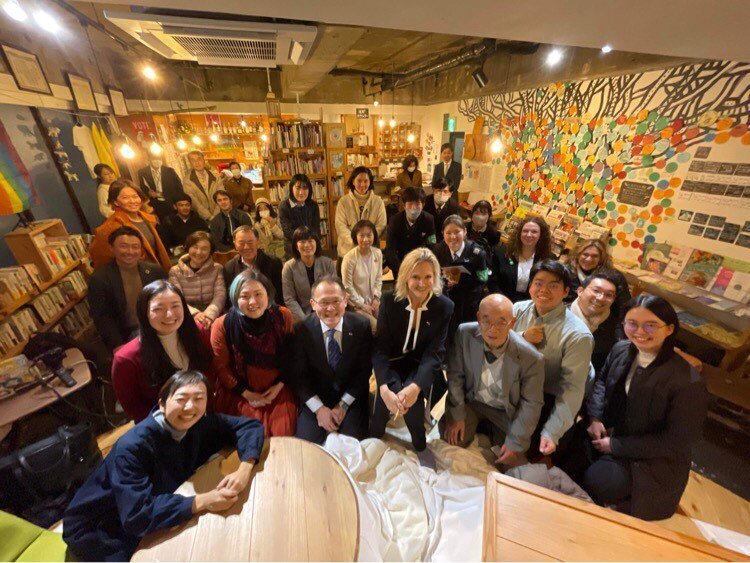 トークショーの会場は原爆ドームから歩いて約10分、店主の安彦恵里香さんが「まじめなことを話しても引かれない場所をつくりたい」と2017年にオープンさせた「Social Book Cafe ハチドリ舎」でした。